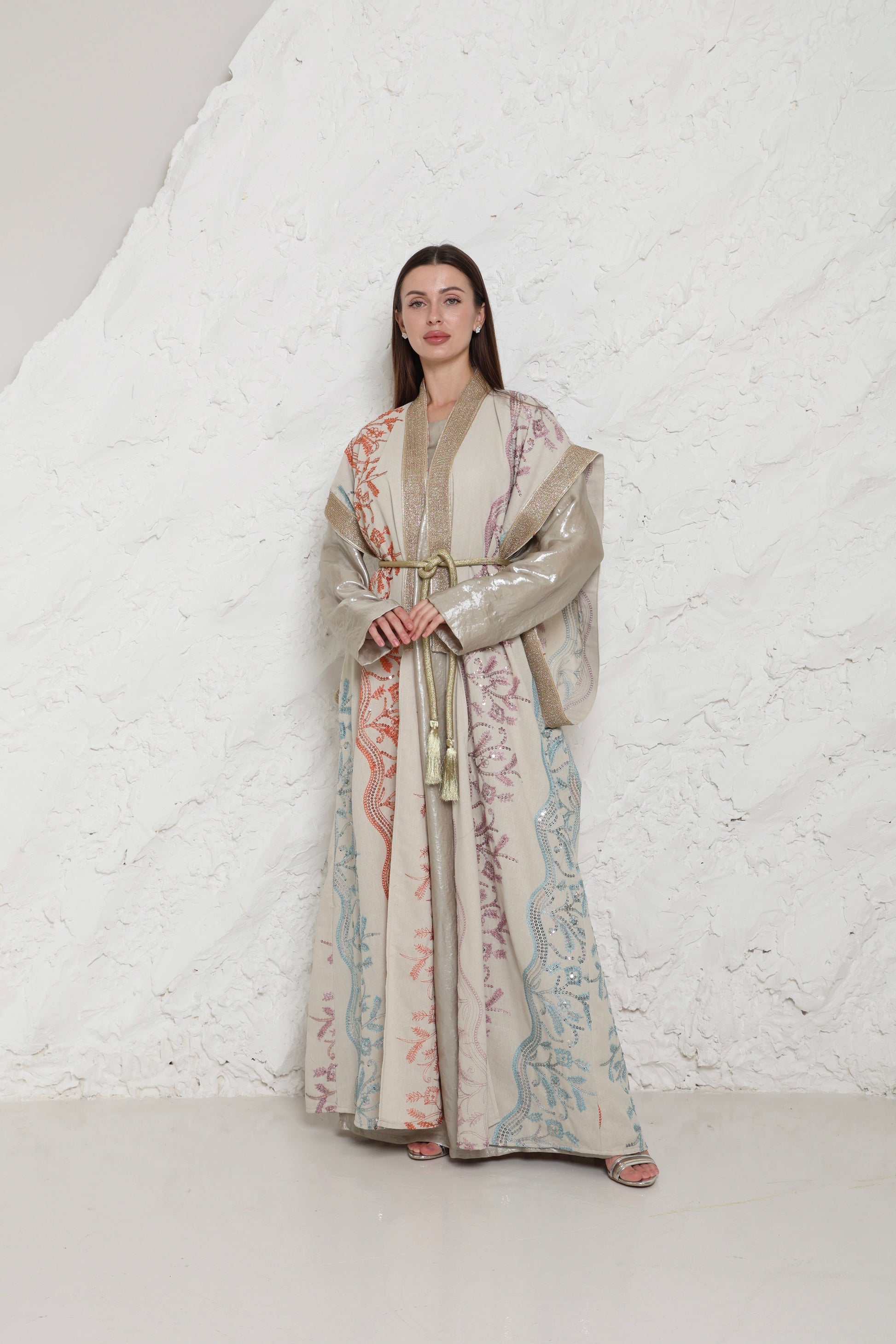 Made for women who prefer a clean, polished look, this Beige kaftan offers a balanced look that feels comfortable and refined. The relaxed silhouette and maxi length create an easy flow suited to special occasion, evening wear and ramadan.