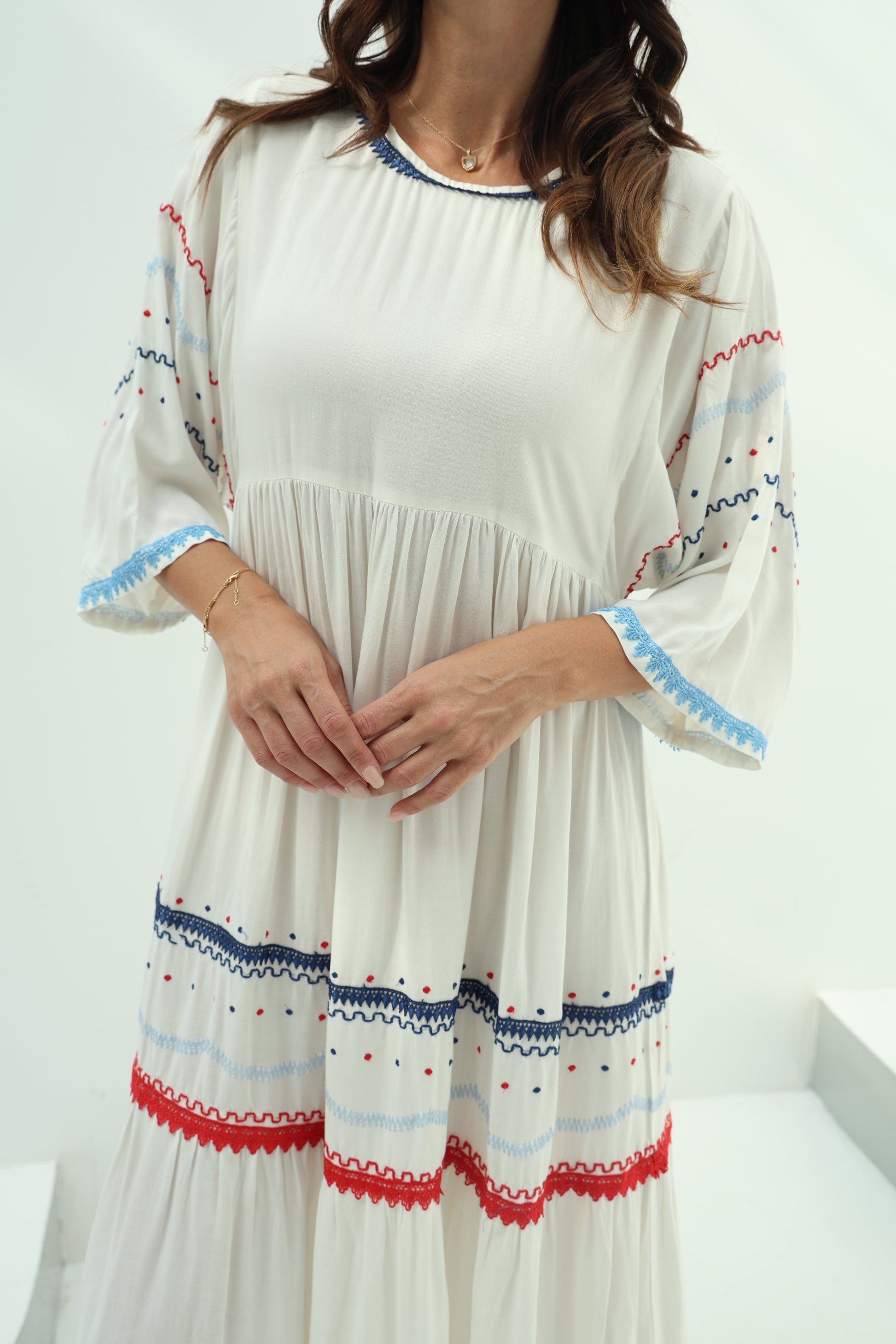 For a simple silhouette that feels current and easy, this off white casual wear gives you a comfortable look that still feels put-together. The loose shape and maxi length create an easy flow for daily wear and beach/resort.