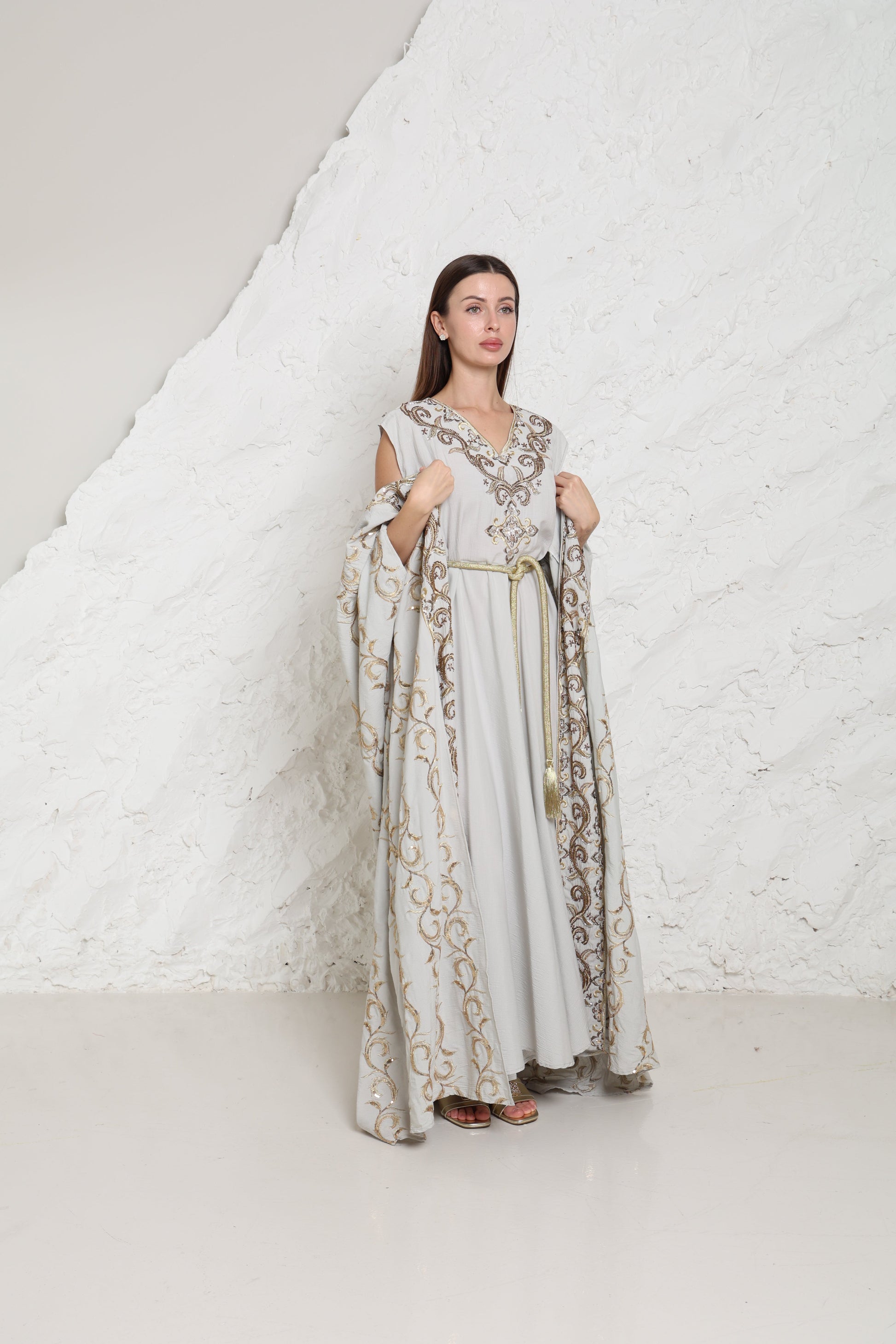 Made for women who prefer a clean, polished look, this Grey abaya offers a balanced look that feels comfortable and refined. The relaxed silhouette and maxi length create an easy flow suited to special occasion, evening wear and ramadan.